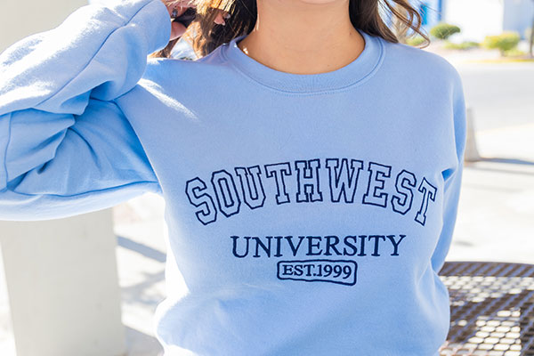 Represent the university with style and comfort in our classic SU crewneck in a vibrant Sky Blue. Designed for durability and daily use, it’s perfect for chilly days on campus or for showing your university pride wherever you go.